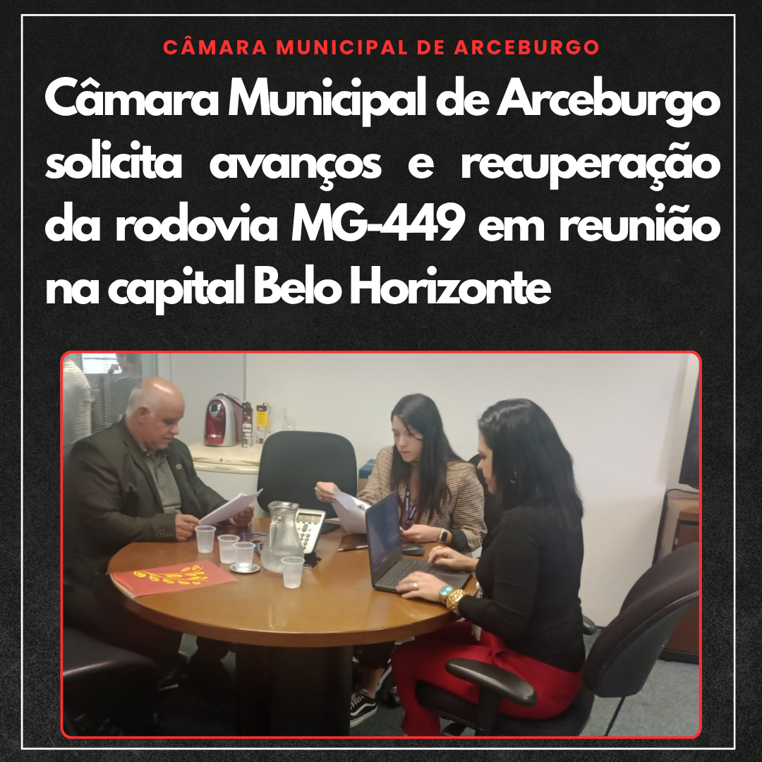 CÂMARA MUNICIPAL DE ARCEBURGO SOLICITA AVANÇOS E RECUPERAÇÃO DA RODOVIA MG-449 EM REUNIÃO NA CAPITAL BELO HORIZONTE