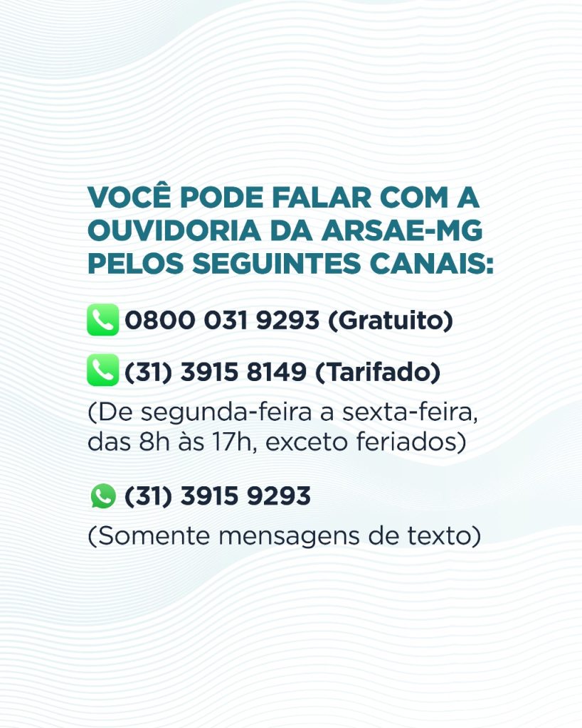 Precisa reclamar contra a Copasa? Fale com a Arsae-MG, a agência reguladora da empresa.
