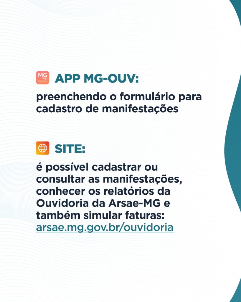 Confira o carrossel e saiba como registrar sua manifestação e com todos os canais de atendimento — incluindo telefone, WhatsApp e o app MG-Ouv.